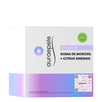 A goma para cabelo, pele e unha contém Verisol, que auxilia na melhora da elasticidade e firmeza da pele, Silício Orgânico, que contribui para a saúde dos cabelos e unhas, e Biotina, que fortalece e estimula o crescimento capilar, além de promover a saúde das unhas.